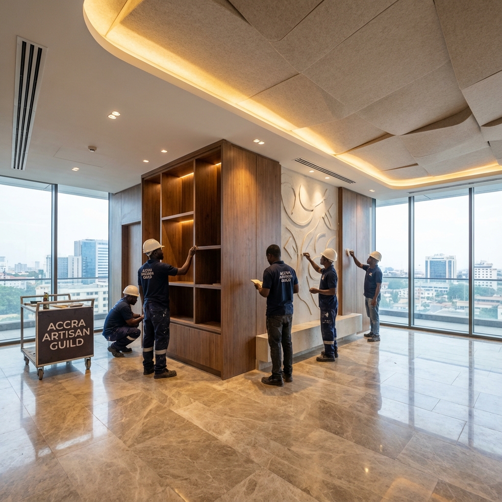 Nationwide Leader — Serving clients across Ghana with a reputation for luxury, precision, and reliability in interior construction services.